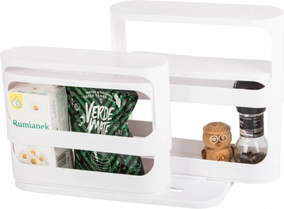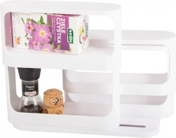Deze witte kunststof organizer is de perfecte oplossing voor het organiseren van kruiden en potjes in je keuken. De draaibare constructie benut de ruimte in de kasten maximaal, waardoor het een ideale aanvulling voor elk huishouden is.