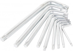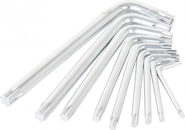 Set inbussleutels verpakt in een praktische kunststof hanger, gemaakt van hoogwaardig staal dat uitblinkt in duurzaamheid en flexibiliteit. Ideaal voor moeilijk bereikbare plaatsen dankzij universele L-vormige sleutels.
