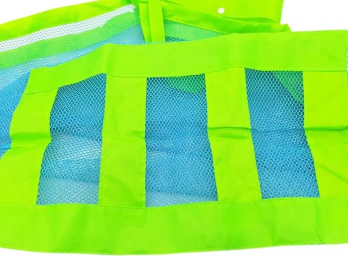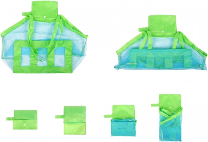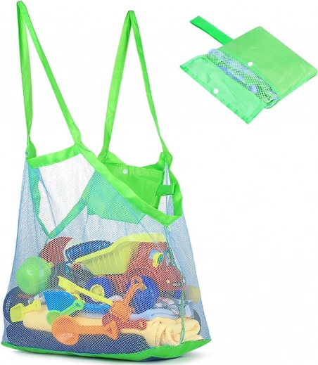 De mesh-constructie houdt de inhoud geventileerd, versnelt het drogen en laat zand vrij doorvallen – ideaal voor strand en zwembad.