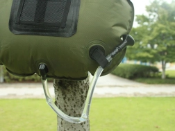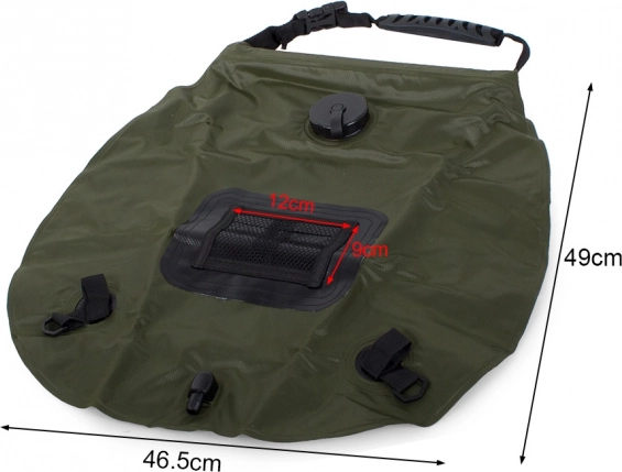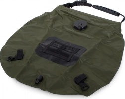 Na het leeglaten vouwt de douche gemakkelijk op in het meegeleverde etui. Het gaasvak aan de voorkant houdt zeep en shampoo binnen handbereik.