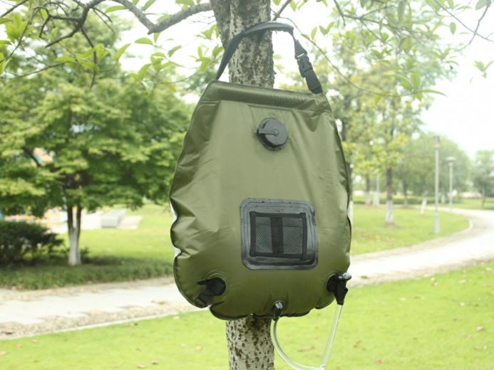 Deze draagbare zonnedouche is een betrouwbare oplossing wanneer er geen stromend water beschikbaar is. Vul hem, hang hem aan een tak of haak, en de zon zorgt voor een snelle waterverwarming. De ingebouwde temperatuurindicator laat eenvoudig zien wanneer het water ideaal is om te douchen.