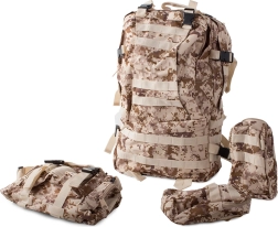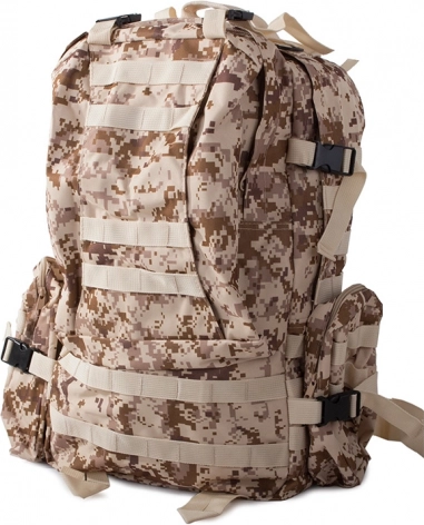 Ga op pad zonder je zorgen te maken over het weer met de waterdichte tactische rugzak. Deze rugzak biedt één groot hoofdvak met een extra compartiment en meshzakken voor betere organisatie. Twee zijtassen kunnen eenvoudig afgenomen worden, terwijl de grotere heuptas als aparte tas kan worden gebruikt. De rugzak maakt gebruik van het MOLLE-systeem voor het toevoegen van extra zakken en modules en is uitgerust met een borst- en heupband voor maximaal comfort en stabiliteit.