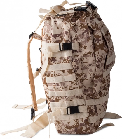 Dankzij het MOLLE-systeem en de verstelbare borst- en heupband is de rugzak ideaal voor lange tochten.