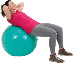 De gymnastiekbal, gemaakt van duurzaam PVC-materiaal, is perfect voor regelmatige trainingen. De bal heeft een getextureerd oppervlak met nopjes die extra massage en stimulatie bieden tijdens het oefenen. Deze bal is geschikt voor diverse oefeningen en ondersteunt een goede lichaamshouding.
