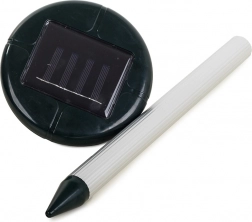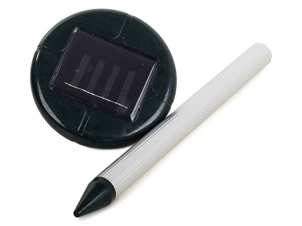 Het geïntegreerde zonnepaneel laadt overdag de ingebouwde batterijen op, zodat de verjager continu werkt zonder batterijen te vervangen of laders te gebruiken.