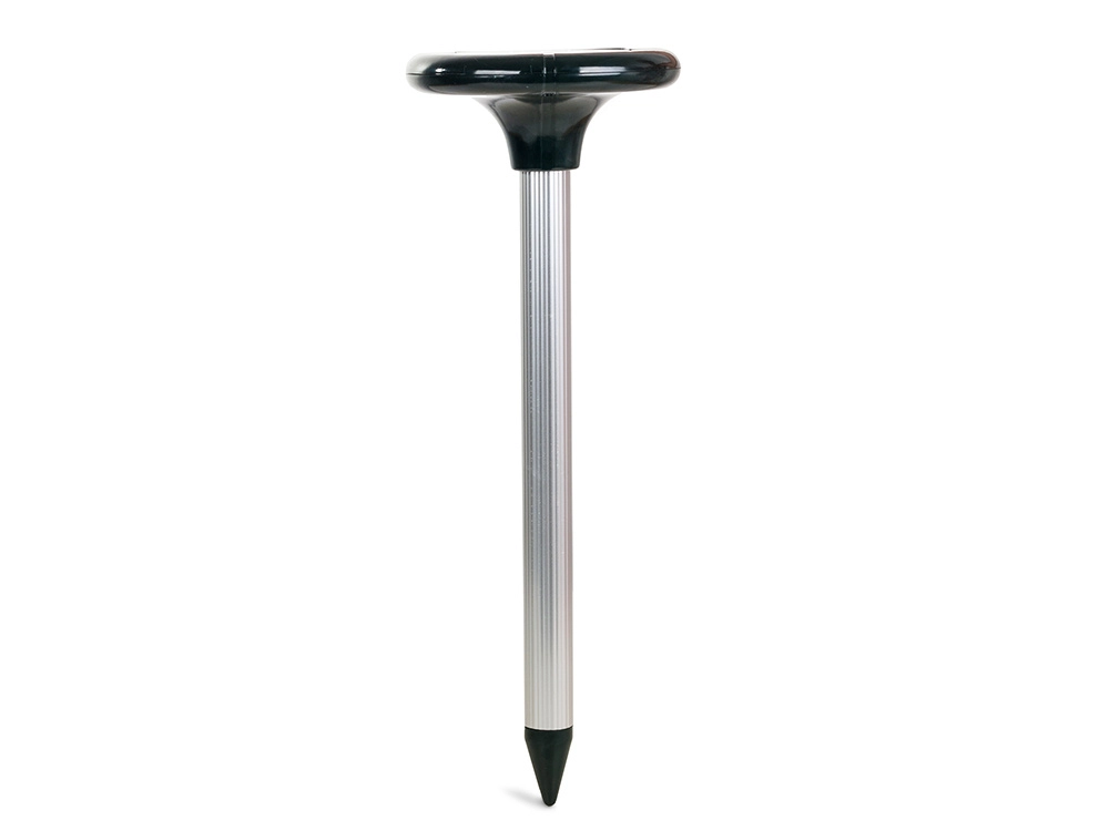 De installatie is snel: steek de punt in de grond en laat de zon het werk doen. Voor grotere oppervlakken raden we aan meerdere units te gebruiken met een voldoende dichte plaatsing. Het beste bereik wordt behaald in vochtige of kleiachtige grond; in droge en zanderige grond kan het effectieve gebied kleiner zijn.