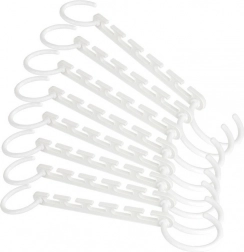 Het is gemaakt in wit, wat gemakkelijk past in het interieur van elke kledingkast, en de compacte afmetingen zorgen voor een onopvallende integratie. De verpakking bevat acht stukken organizers, wat het mogelijk maakt om een grotere hoeveelheid kleding te organiseren.