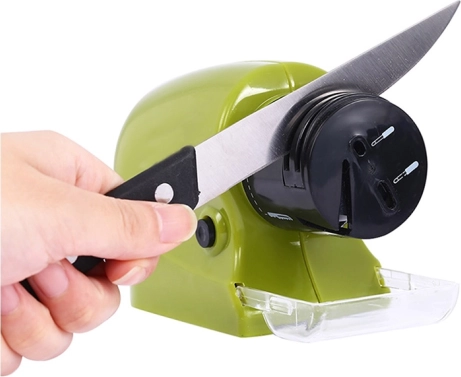 Scherpe messen, scharen en platte schroevendraaiers in enkele seconden. Plaats het lemmet in de geleidingssleuf en druk op de schakelaar – de slijper doet de rest.