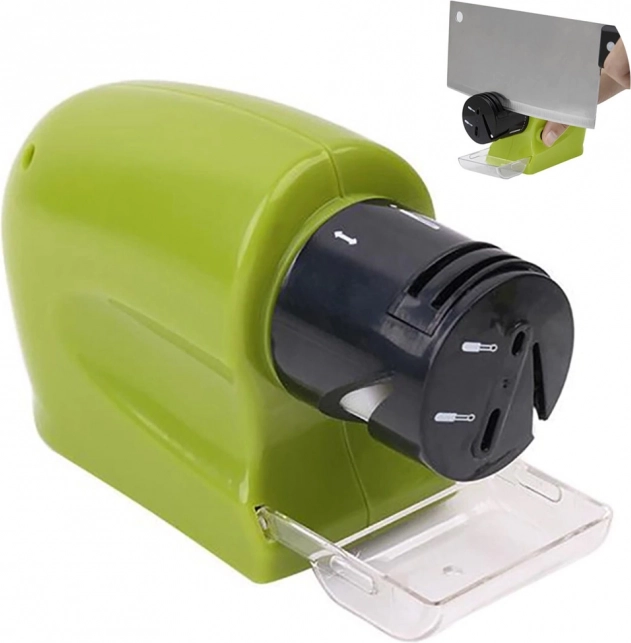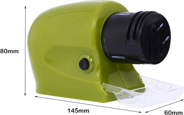 Praktische elektrische slijper voor messen, scharen en platte schroevendraaiers die in enkele seconden scherpe randen verzorgt. Dankzij de draaibare en afneembare kop, veilige werking met afgeschermde slijpsteen en voeding 4× AA is hij ideaal voor elke keuken en werkplaats. Compacte afmetingen 145 × 60 × 80 mm en een opvangbak voor slijpsel maken gebruik en onderhoud eenvoudig.