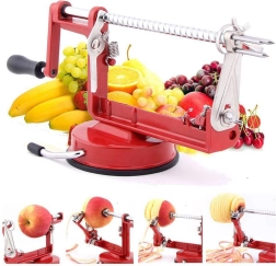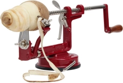 Deze stalen 3-in-1 appelspinner versnelt de voorbereiding van fruit voor bakken en voor dagelijks gebruik. Dankzij het scherpe roestvrijstalen mes en de soepele afstelling schilt u de schil, verwijdert u het klokhuis en snijdt u de appel in spiraalvormige plakjes. De stabiele zuignap bevestigt het apparaat veilig aan het aanrecht.