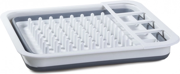Dit siliconen afdruiprek is een revolutionaire hulp voor elk huis. U kunt het snel uitklappen binnen enkele seconden en als u het niet meer nodig heeft, kunt u het opvouwen en gemakkelijk opbergen in een kast. Het biedt ruimte voor borden, kopjes en een aparte afdruipbak voor bestek, wat het een multifunctioneel apparaat maakt.