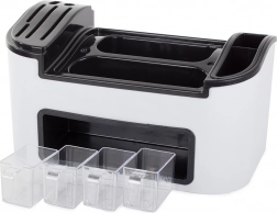 Het onderste deel van de organizer bevat vier ruime lades van esthetisch transparant plastic, ideaal voor het opbergen van koffie, thee of suiker. Elk onderdeel van de organizer is eenvoudig afneembaar voor grondige reiniging en de basis fungeert als afdruiprek om droogte te garanderen.