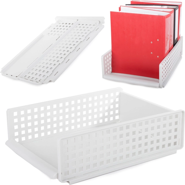 De organizer is ideaal voor het opbergen van documenten op kantoor of thuis. U kunt hem ook gebruiken voor het opbergen van boeken, tijdschriften of schoolboeken. Dankzij de opvouwbare constructie vouwt u hem eenvoudig op en bergt u hem in een lade op wanneer u hem niet nodig hebt.