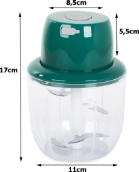 De snijder is ontworpen voor eenvoudig gebruik en onderhoud, met gemakkelijk schoonmaken en opbergen. De capaciteit is 1 liter, wat het ideaal maakt voor dagelijks gebruik in huis. Het product wordt geleverd in een prachtige groene kleur die een stijlvolle uitstraling aan uw keuken geeft.