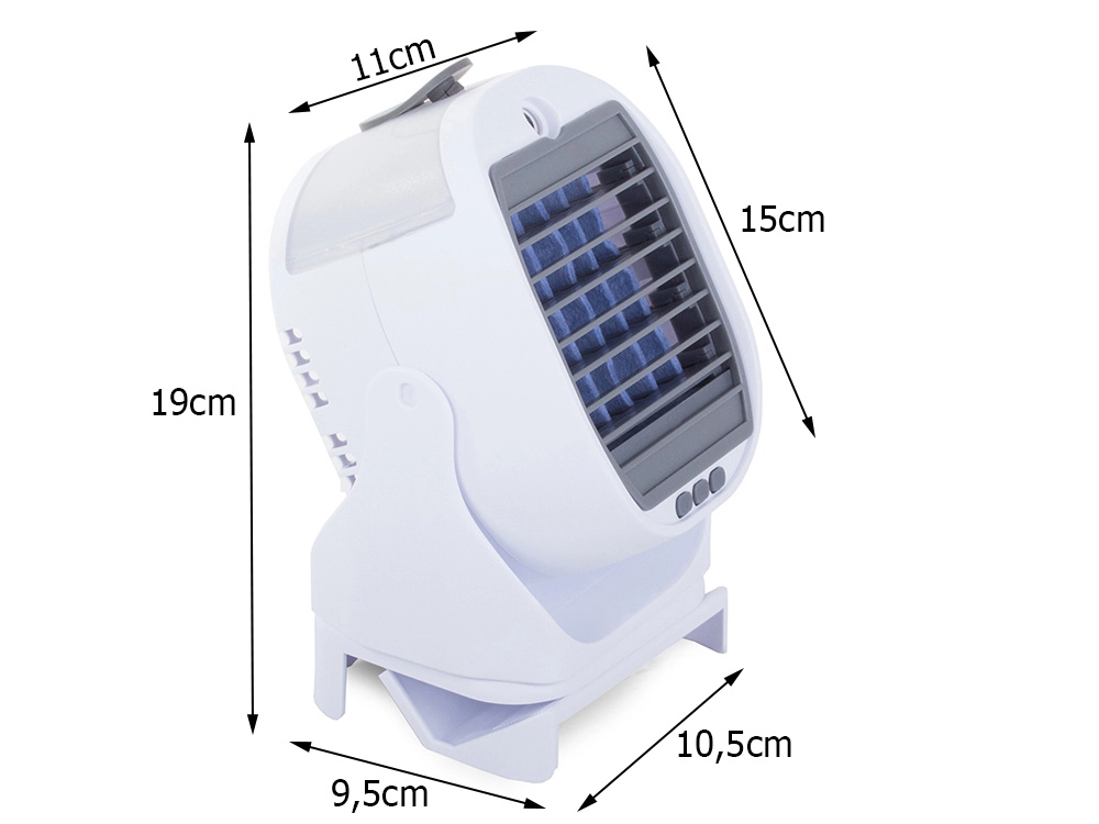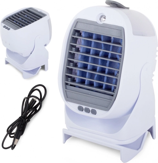 De unieke hydro‑cooling technologie gebruikt moderne filters die warme lucht transformeren naar aangenaam koele en vochtige lucht. Dankzij de ingebouwde oplaadbare batterij en USB‑voeding is dit apparaat draagbaar en eenvoudig te gebruiken: het kan op een computer worden aangesloten of draadloos worden gebruikt.