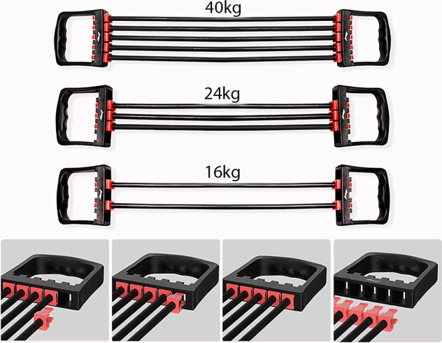 Universele expander met 5 afneembare weerstandsbanden en ergonomische handgrepen voor effectief krachtoefenen, rekken en revalidatie. Biedt instelbare spanning, eenvoudig gebruik en lange levensduur dankzij hoogwaardige materialen.