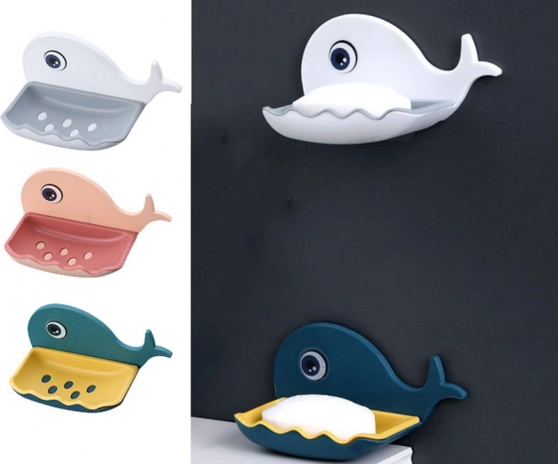 Deze praktische walvis-zeephouder combineert een schattige look met slimme functionaliteit. De afvoergaten in de bodem laten water vrij wegstromen, waardoor zeep langer meegaat en niet wegglijdt. Dankzij de wandmontage bespaar je ruimte op de wastafel en houd je de omgeving netjes.
