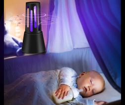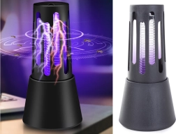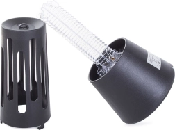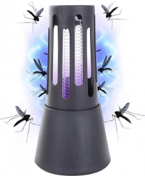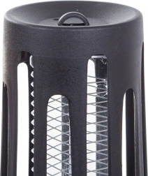 Blauwpaars UV-licht trekt muggen en vliegen aan, die vervolgens worden uitgeschakeld op het spanningsrooster. Snel, efficiënt en zonder chemicaliën.