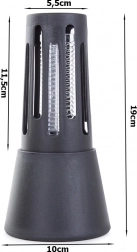 Dankzij de USB-voeding sluit je hem eenvoudig aan op een laptop, powerbank of adapter. Het ontwerp met een afschroefbaar bovendeel maakt snelle reiniging mogelijk; in de verpakking zit ook een praktisch borsteltje. De stabiele kegelvormige basis zorgt voor een veilige plaatsing zonder montage.