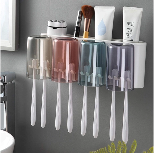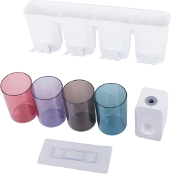 Breng orde in de badkamer met een slimme organizer die een tandenborstelhouder, een tandpastadispenser en opbergvakken voor alledaagse benodigdheden combineert. Inclusief 4 plastic bekers (300 ml) voor comfortabel gebruik door het hele gezin. Installatie is snel en schoon – bevestig eenvoudig op de muur met een sterke zuignap, zonder boren.