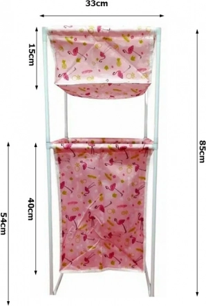 De wasmand is ontworpen voor maximale functionaliteit en gebruiksgemak. Dankzij zijn universele constructie kan hij op twee verschillende manieren worden gebruikt: met de bovenste plank of als één grote mand. Hij is gemaakt van hoogwaardig plastic en waterbestendige stof, wat zorgt voor een lange levensduur en gemakkelijk onderhoud.