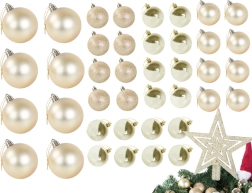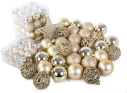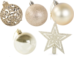 De set bevat ornamenten in verschillende maten en patronen, die uw boom een nobele uitstraling geven.