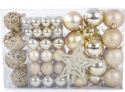 Deze set kerstversieringen combineert de elegantie van gouden tinten met de praktische eigenschappen van onbreekbare plastic ornamenten. Geschikt voor iedereen die zijn kerstboom een vleugje luxe wil geven zonder zich zorgen te maken over veiligheid. Plastic versieringen zijn perfect voor huishoudens met kinderen en huisdieren, omdat ze licht zijn en niet breken als ze vallen.