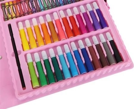 Deze rijk uitgeruste set biedt alles wat kinderen en beginnende kunstenaars nodig hebben om hun fantasie en fijne motoriek te ontwikkelen. 168 onderdelen, zorgvuldig geordend in een stevige koffer, garanderen overzicht, een snelle kleurkeuze en comfortabel meenemen. Geschikt voor kinderen vanaf 3 jaar.