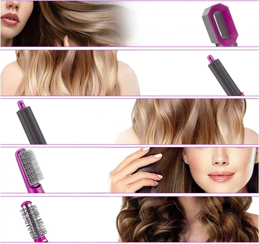 5-in-1 haarstyling set is de ideale keuze voor dagelijks stylen en haarverzorging. Dit multifunctionele apparaat combineert een föhn, stijltang en krultang en dekt zo alle behoeften voor het creëren van kapsels.