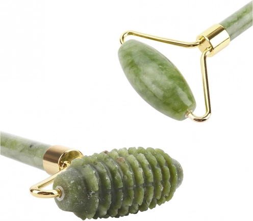 De jaderoller is een geliefd hulpmiddel voor thuisverzorging van de huid. Regelmatige massage ondersteunt de lymfedrainage, verbetert de doorbloeding en geeft de huid een gezonde glans. De grotere roller is ideaal voor voorhoofd, wangen, kin en nek; het kleinere deel is fijn rondom de ogen, neus en mond. Voor een extra verfrissend effect kunt u de roller kort in de koelkast koelen voor gebruik.