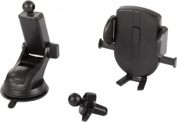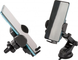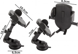 De telefoonhouder voor in de auto is ontworpen om veilig en comfortabel gebruik van uw mobiele apparaat te bieden tijdens het rijden. Hij wordt eenvoudig gemonteerd op de voorruit of het dashboard en dankzij het systeem met verstelbare armen is de houder geschikt voor de meeste telefoons en GPS-apparaten.