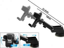 We brengen u een praktische autohouder die u in staat stelt veilig te rijden met uw telefoon binnen handbereik. Montage op de voorruit is snel en dankzij de sterke zuignap biedt het stabiele bevestiging.