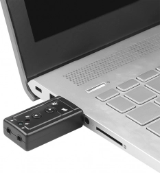 Deze lichte en draagbare USB-geluidskaart breidt direct de geluidsmogelijkheden van uw computer uit. Sluit hem eenvoudig aan op een USB-poort en u krijgt een aparte 3,5mm uitgang voor hoofdtelefoon/luidsprekers en een 3,5mm ingang voor microfoon. Dankzij de plug & play-oplossing zijn geen drivers nodig en werkt hij parallel met de ingebouwde geluidskaart.
