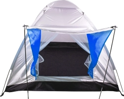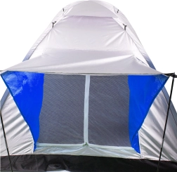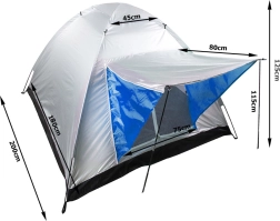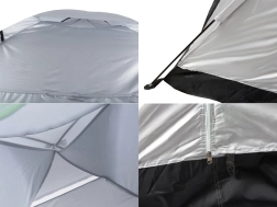 Geniet van comfortabel overnachten in de natuur met een tent die laag gewicht, eenvoudige opbouw en vochtbestendigheid combineert. De enkellaagse constructie met een glasvezel frame zorgt voor stabiliteit, terwijl de zilverkleurige coating de binnentemperatuur beter behoudt. De ingang met muskietennet laat frisse lucht circuleren zonder muggen.