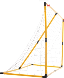 Het gele frame met stevige koppelingen en strak gespannen net kan intensieve training thuis en in de tuin aan.