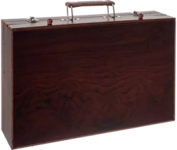 Dankzij het praktische houten koffertje met handvat en veilige sluiting is het meenemen van deze zets eenvoudig en comfortabel. Dankzij de goed georganiseerde vakken hebt u altijd eenvoudige toegang tot de afzonderlijke hulpmiddelen die in goede staat en altijd overzichtelijk blijven.