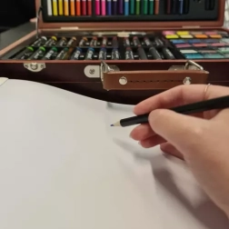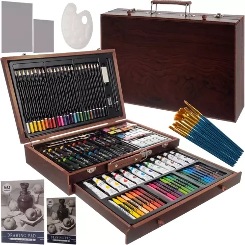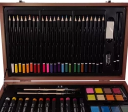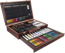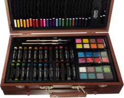De zets bevat een breed scala aan artistieke hulpmiddelen, noodzakelijk voor het schilderen, tekenen en andere technieken. Het is ideaal voor inspiratie tot nieuwe artistieke resultaten.