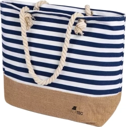 Geniet van een dag aan het water of in de stad met een veelzijdige tas die alles meeneemt, van handdoek en cosmetica tot boeken en een snack. De jute-look onderzijde en blauw-witte strepen benadrukken de trendy maritieme stijl, perfect voor strand, picknick en dagelijks gebruik.
