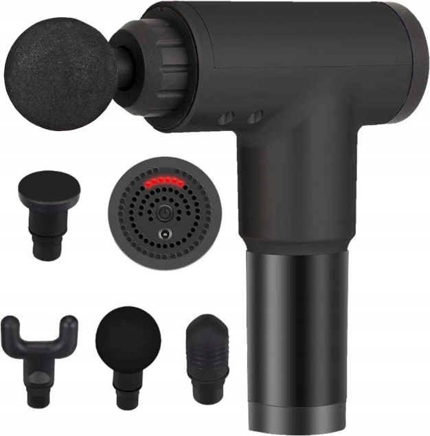 In de verpakking zitten 4 opzetstukken voor gerichte verzorging: rond voor universeel gebruik, plat voor grotere spiergroepen, vork voor de rug- en nekomgeving en een puntige kogel voor triggerpoints en diepere weefsels. 6 snelheidsniveaus (tot 3600 rpm) laten u de intensiteit aanpassen van milde ontspanning tot een diepe massage.