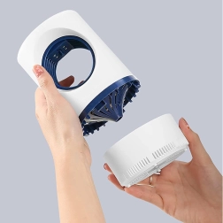 De afneembare opvangbak maakt snel en hygiënisch reinigen mogelijk zonder direct contact met insecten. USB-voeding biedt flexibiliteit in plaatsing – een powerbank, adapter of USB-poort is voldoende. Het elegante design in wit en donkerblauw past in elk interieur.