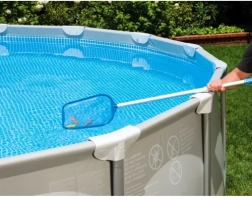 Het brede net met fijne mazen verwijdert betrouwbaar vuil van het wateroppervlak en houdt het water schoon en helder.