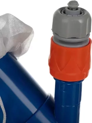 Met deze universele set reinig je oppervlak, wanden en bodem van het zwembad moeiteloos. De stofzuiger wordt via een snelkoppeling op een standaard tuinslang aangesloten – de waterdruk zuigt het vuil in de stoffen zak, schoon water stroomt terug. Het net verwijdert bladeren, insecten en ander drijvend vuil.