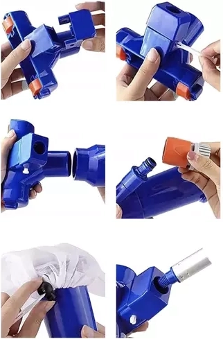 Je sluit de stofzuiger eenvoudig aan op de tuinslang met een snelkoppeling. De waterdruk zuigt het vuil in het zakje, waardoor reinigen snel gaat en onderhoud minimaal is.