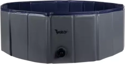 De PURLOV hondenpool is een uitstekende oplossing voor zomerse verkoeling en regelmatige verzorging. Je zet hem in enkele momenten op, laat het water na het baden eenvoudig weglopen via de praktische plug en opgevouwen neemt hij minimale ruimte in. Het duurzame PVC met verstevigde zijden zorgt voor stabiliteit zonder opblazen.